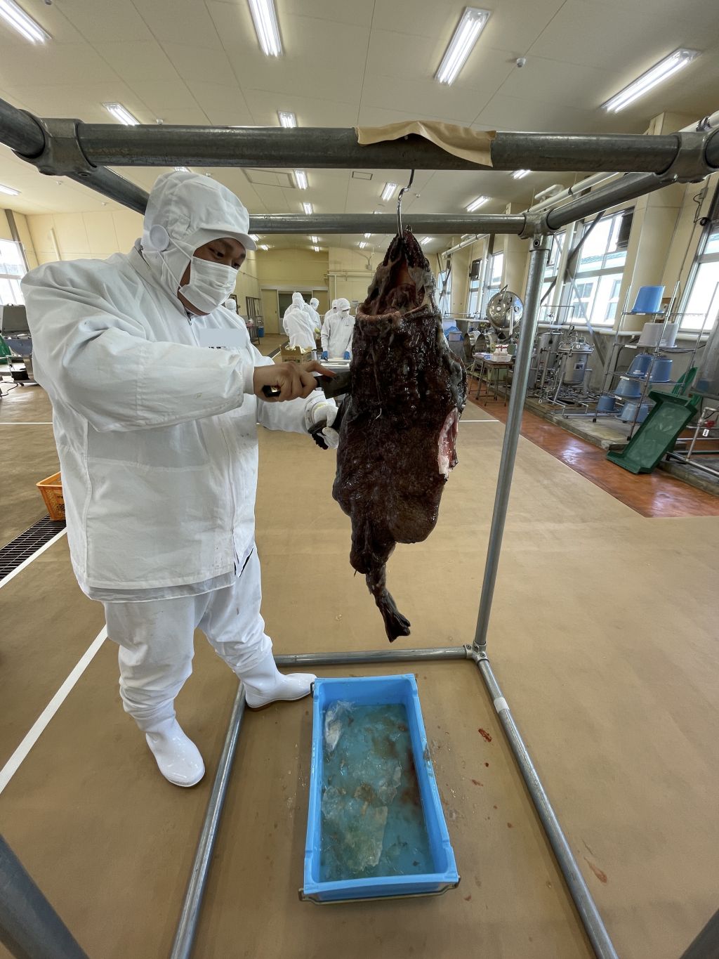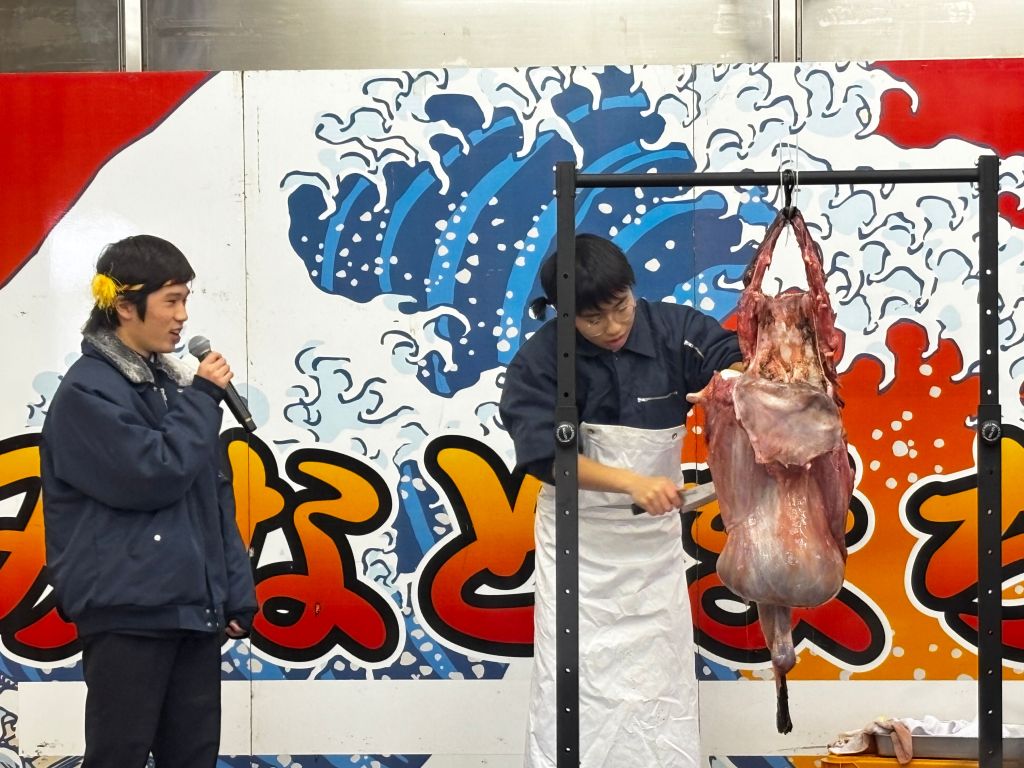 《食品科学コース》「寒ぶりまつり」であんこう吊るし切りショー!