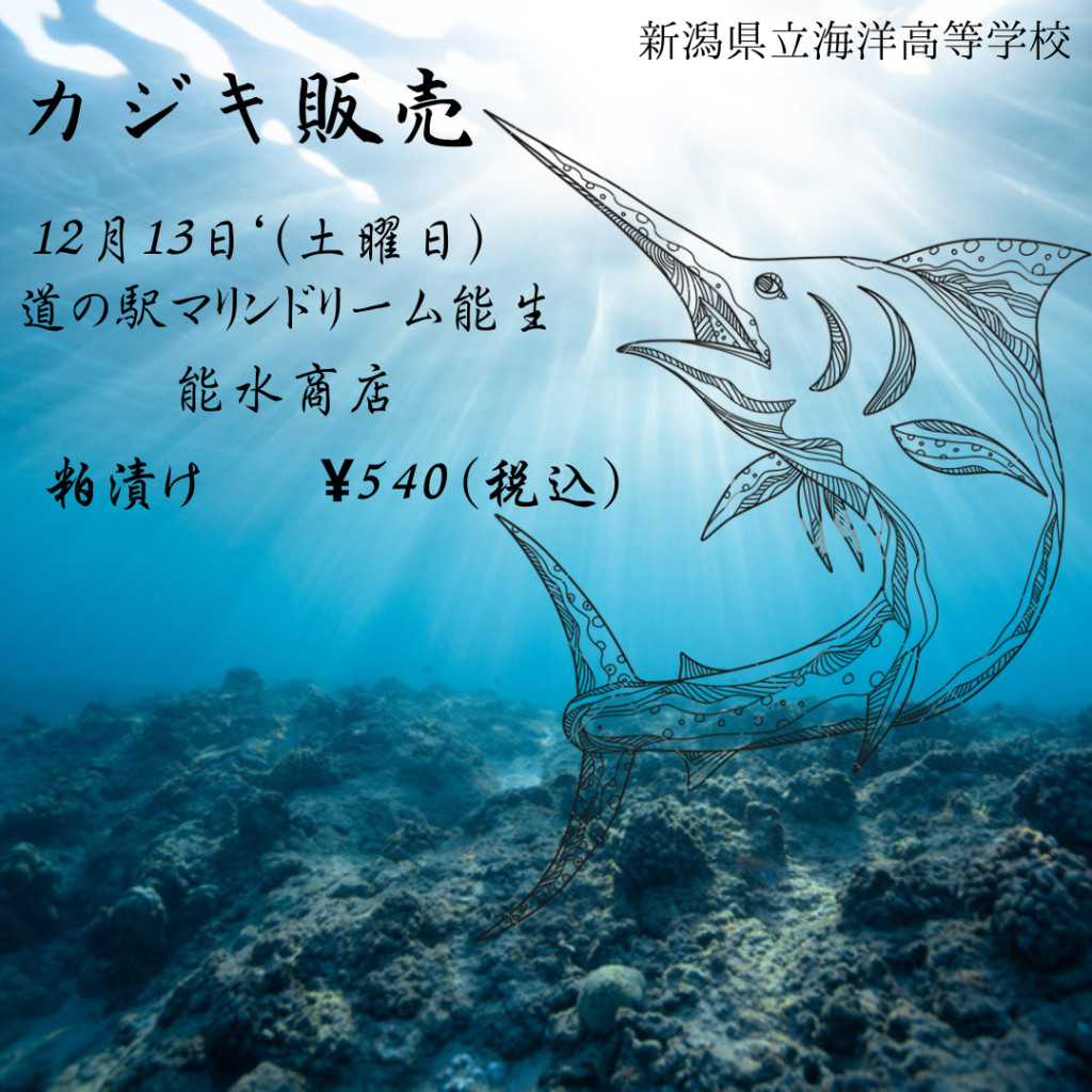 《海洋技術コース》12月13日にカジキ粕漬けを販売します!