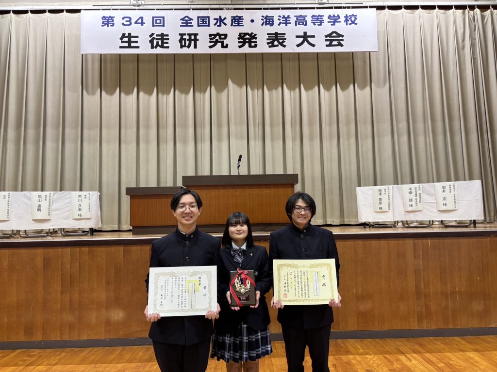 《資源育成コース》第34回全国水産・海洋高等学校生徒研究発表大会で、優秀賞を頂きました!