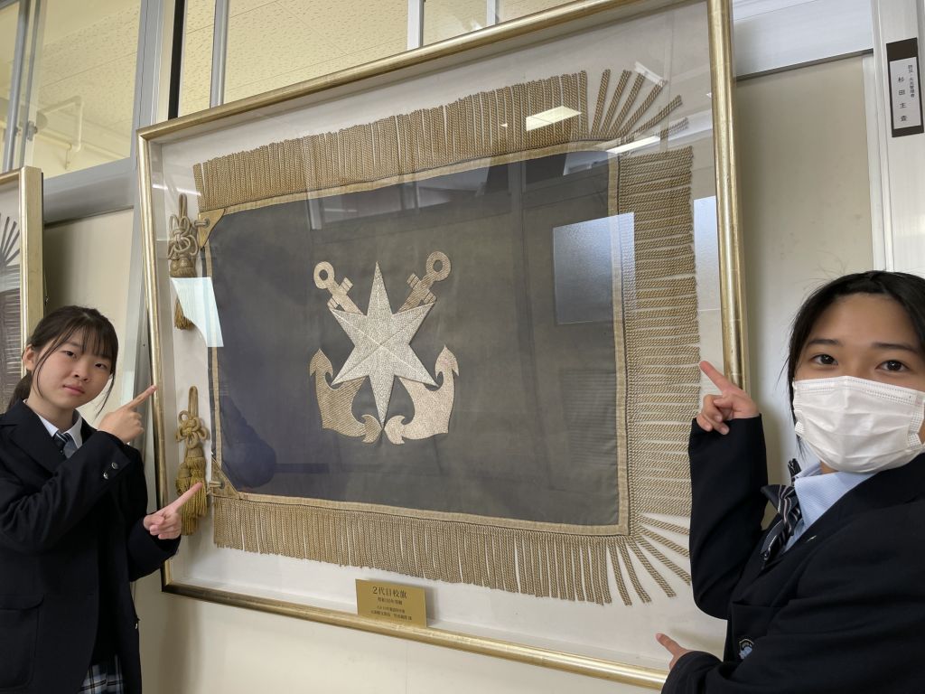 みなさん、こんにちは!1年の小沢と貝沼です。海洋高校の校章と…職員玄関の謎について調べてみました!