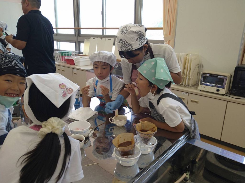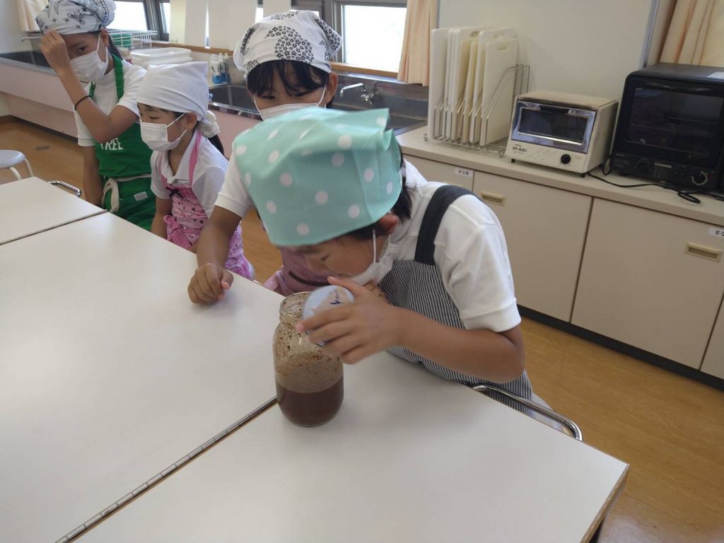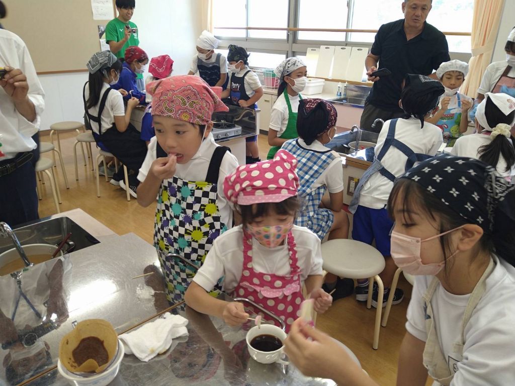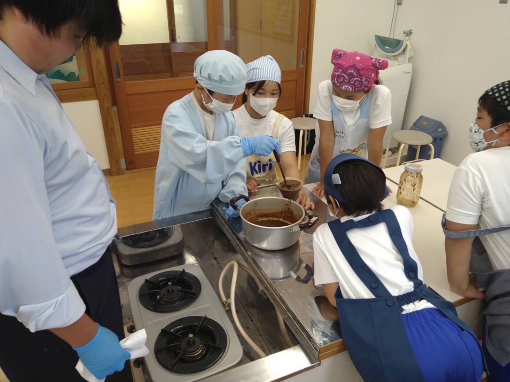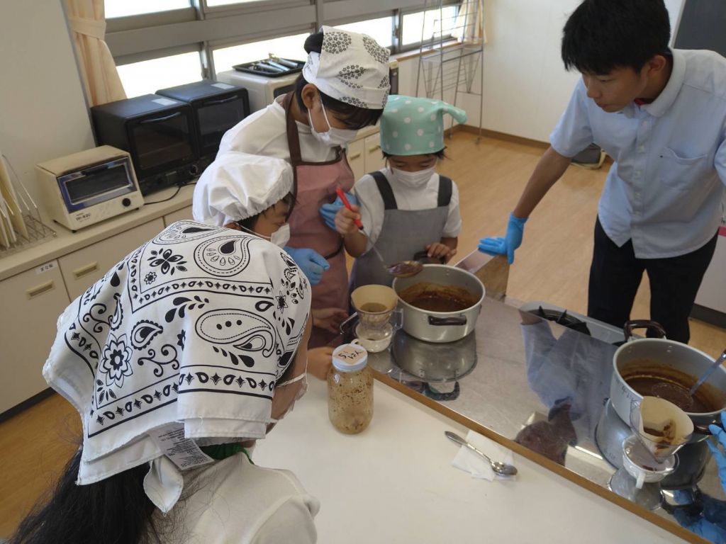 食品科学コース2年の近藤です。7月7日に第3回「いそべ海学習」として、磯部小学校へ行ってきました。今回は、小学生のみなさんが作った魚醤を煮沸後、濾しました。その後、試食となります。