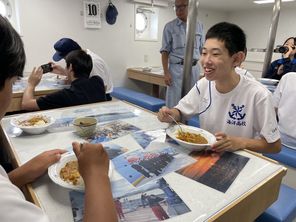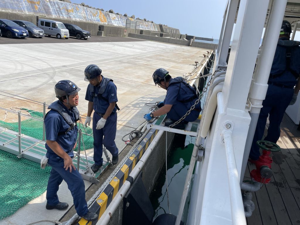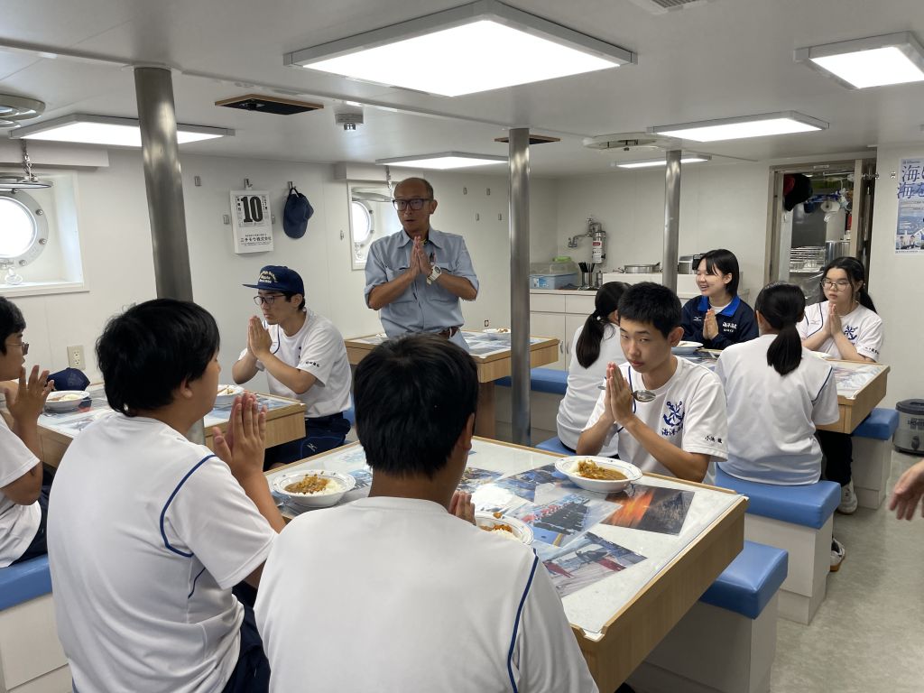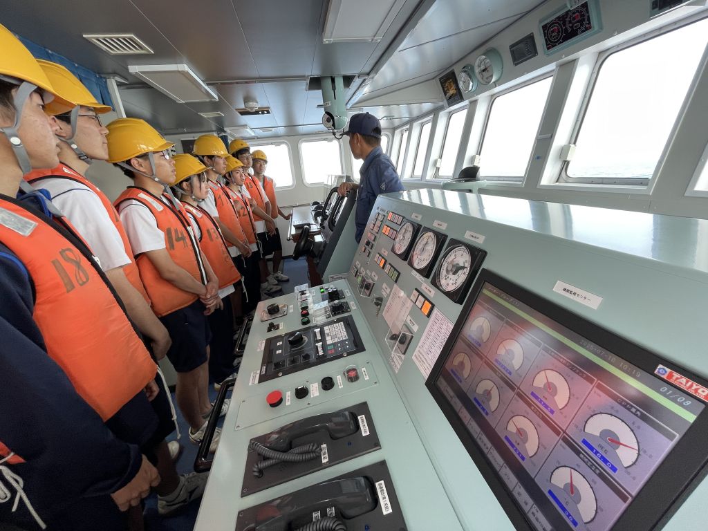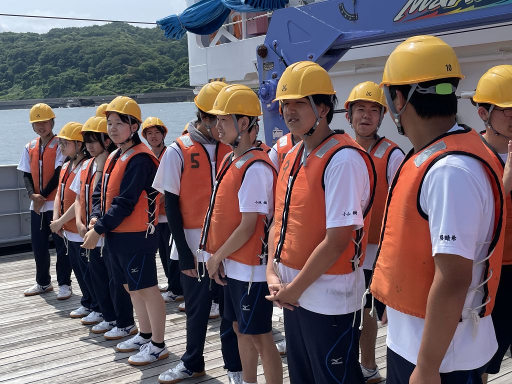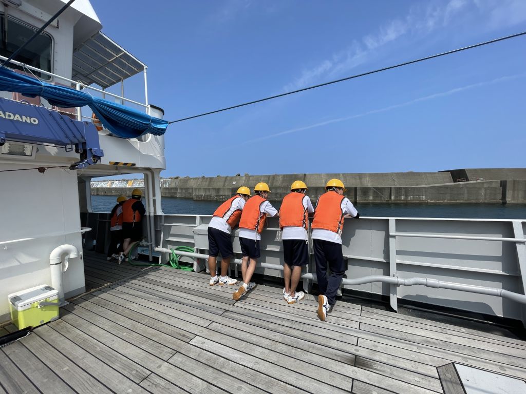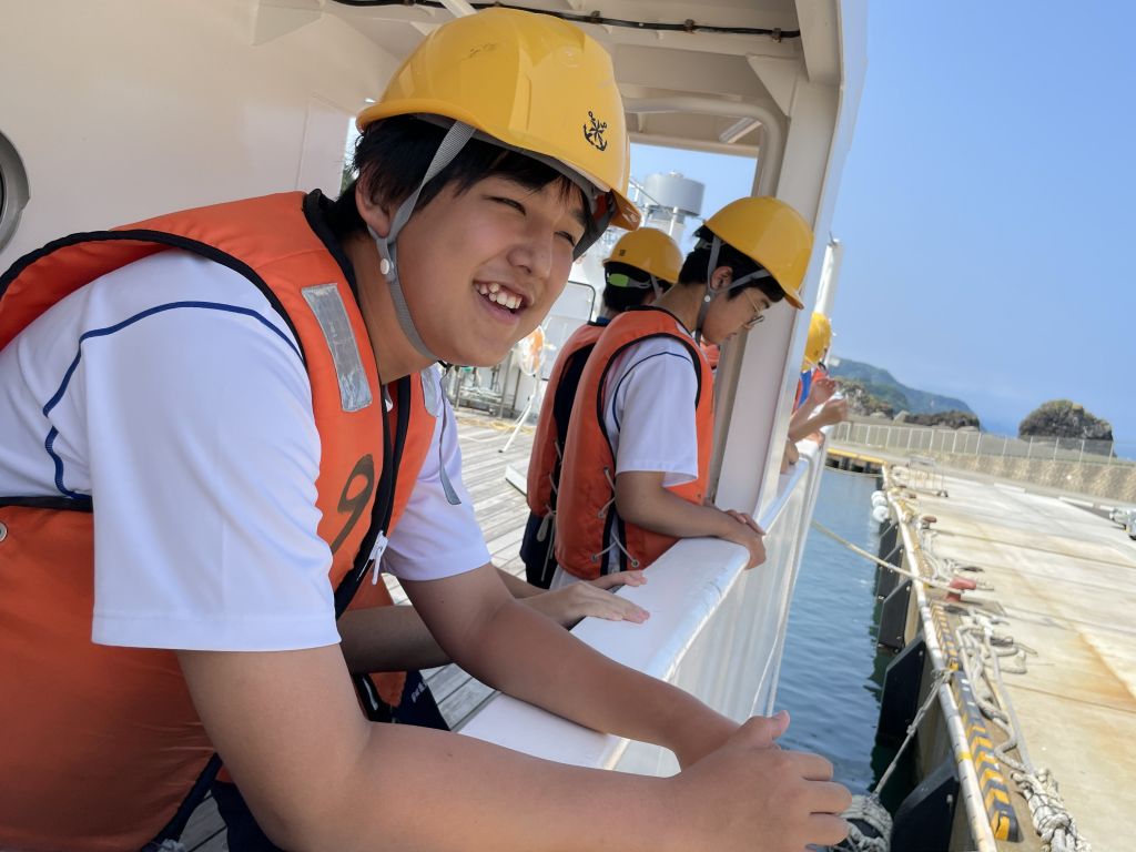 あっという間に帰港時間になってしまいました。今回の体験乗船で、航海技術や漁業の手法に興味をもった生徒は、海洋技術コースを選択すると、もっと専門的な実習などを多く学べるというお話を聞きました。今後のコース選択に役立ちました。海洋丸のみなさん、連日の暑さの中、ありがとうございます!