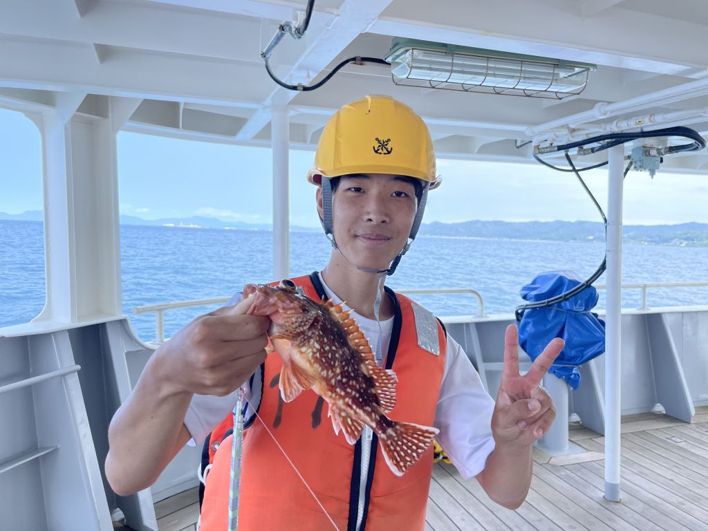 1年の柏崎です。7月10日に海洋丸に乗船し、船内見学、海洋観測、釣り実習をしました。