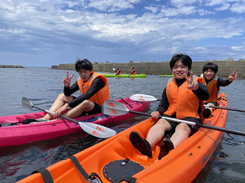 1年の小谷原です。先月、能生海水浴場でマリンスポーツ実習をしました。マリンスポーツ実習では、水上バイク、カヌー、SUP、スノーケリングの4種目を一日で体験します。