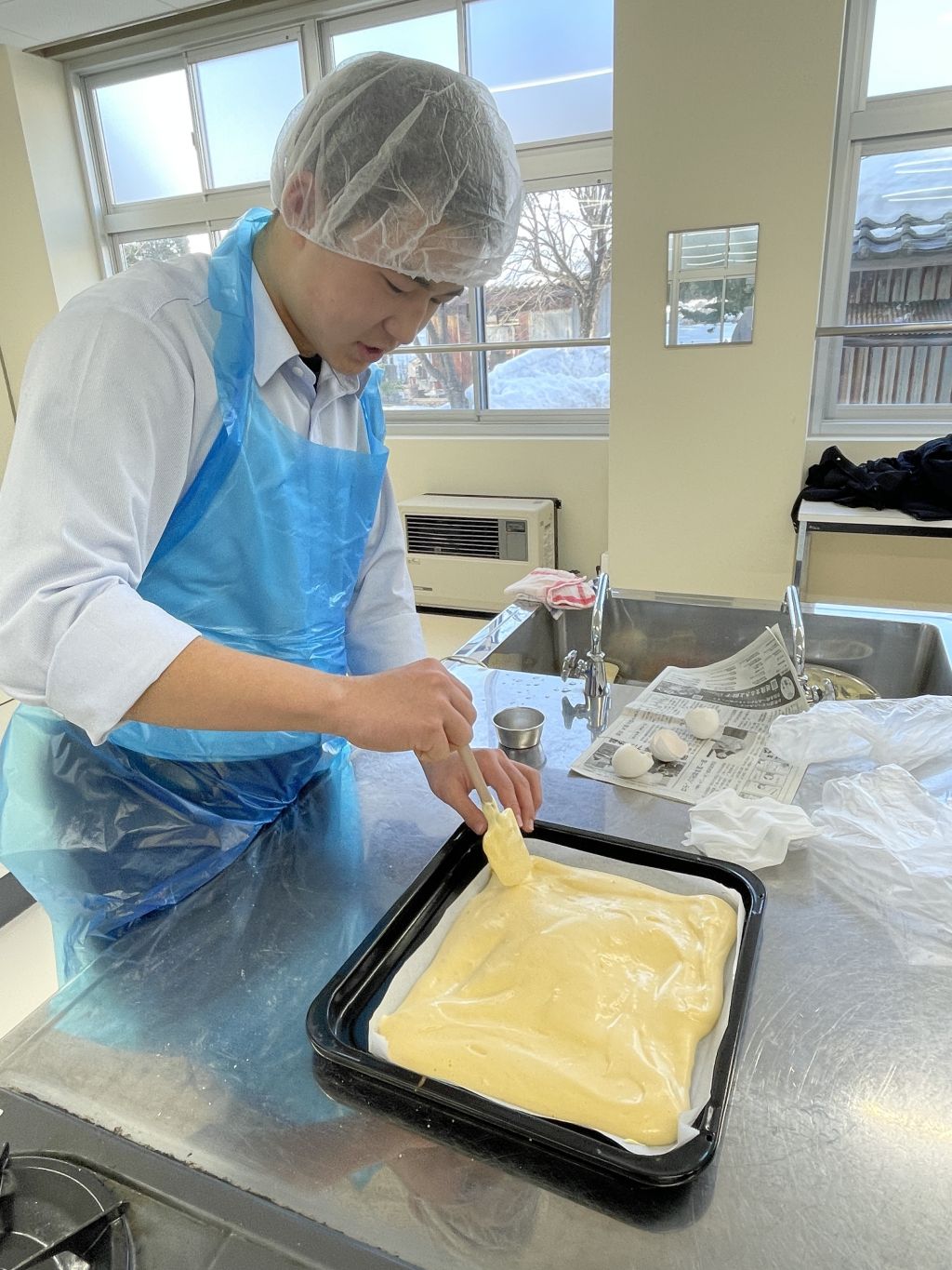 今日のロールケーキ生地は冷凍保存し、次の授業で仕上げていきます!次回の実習も、楽しみです♪