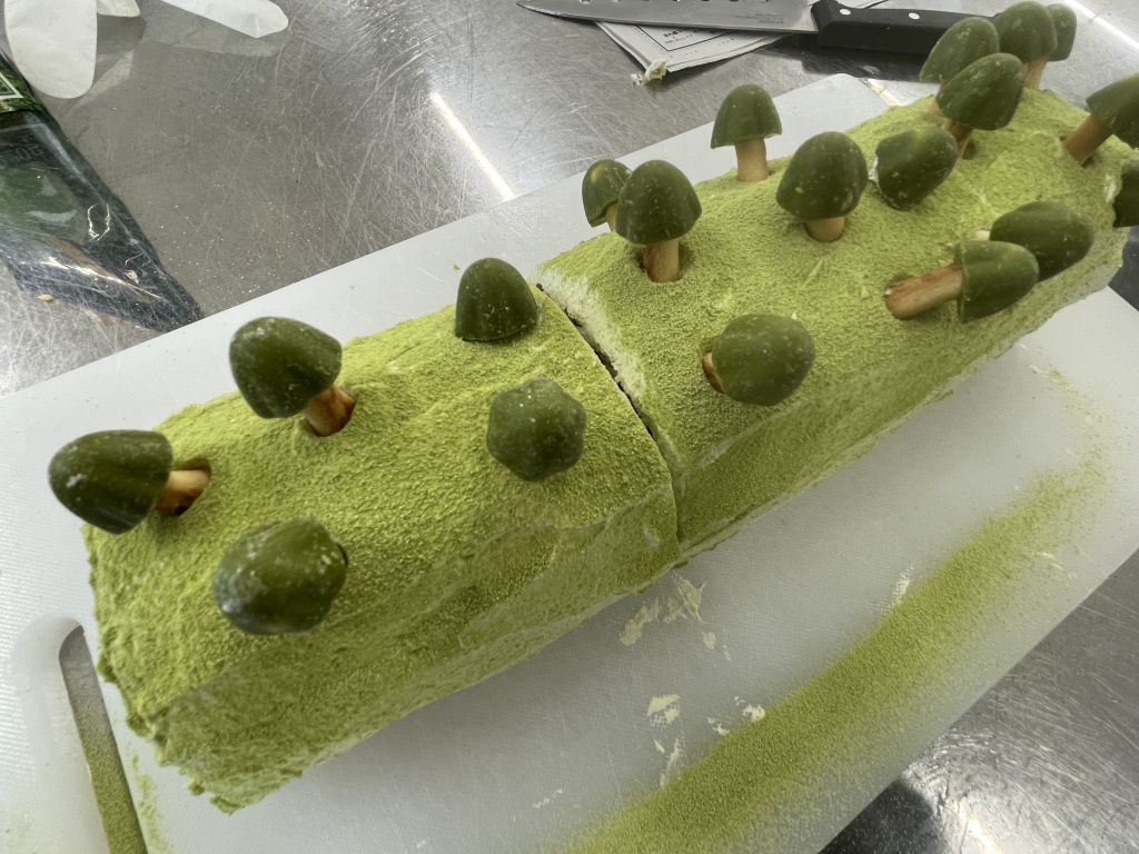抹茶とキノコのロールケーキ