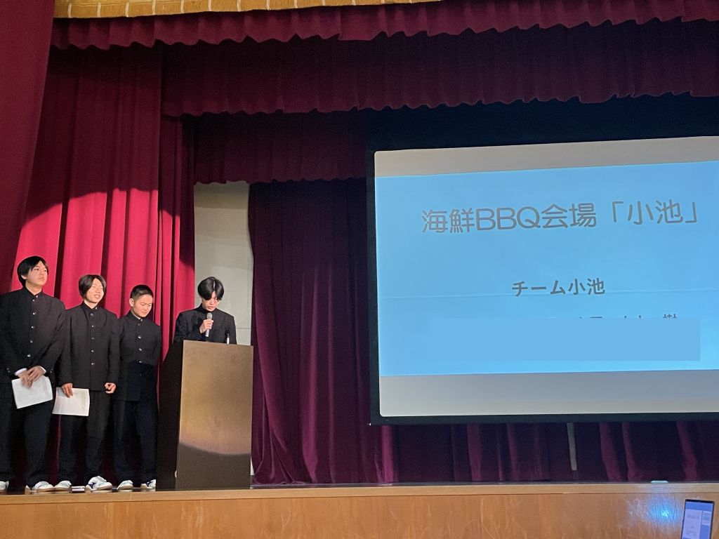プレゼンは地域探究の授業内で選抜された1年生4チームと、2年生各コースの代表4チームの計8チームが行いました。各チーム名のビジネスプランは以下の通りです。