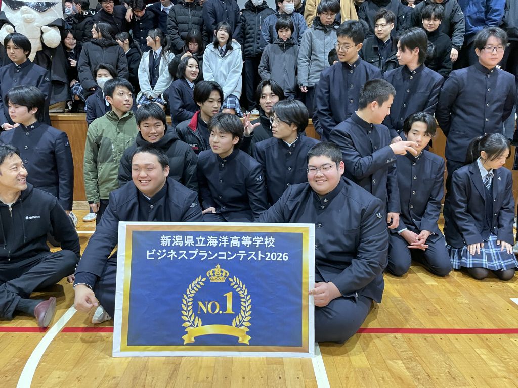 文部科学省委託「マイスター・ハイスクール」事業で新設された1年生科目「地域探究」の授業の一環で、海洋高校生が糸魚川で起業を目指すビジネスプランを1年生、2年生が発表しました。1年生、2年生ともに4チームの出場でした。1年生は、糸魚川市や本校が抱える課題に向き合い、2年生は、さらに各コースの特色を生かした様々なプランを発表しました。